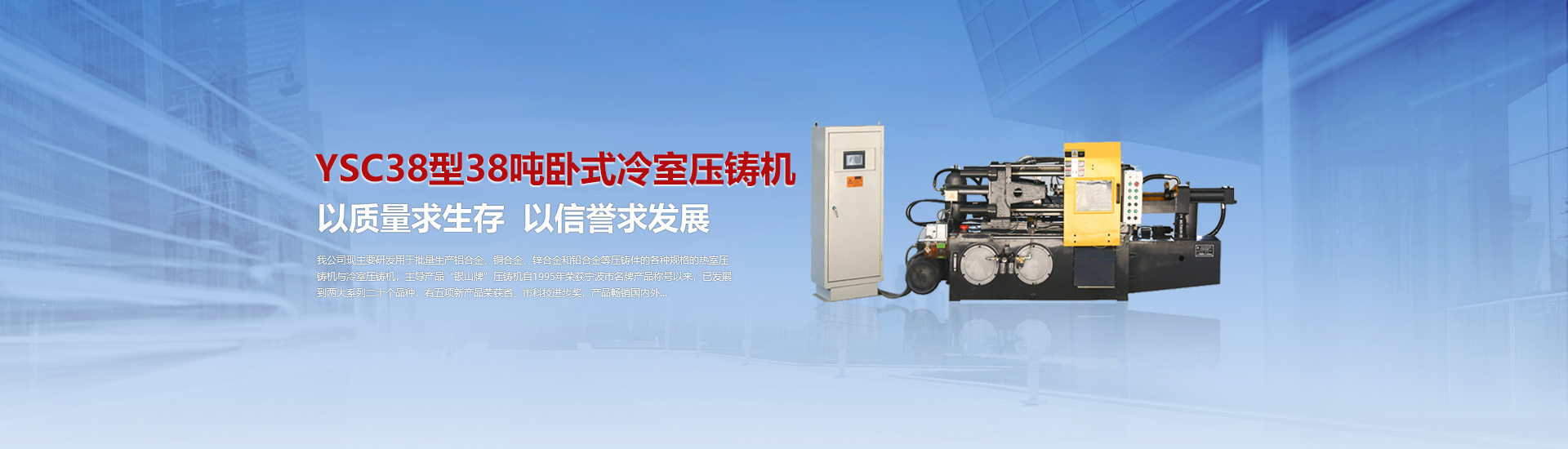 我司現主要研發(fā)用于批量加工生產鋁合金、銅合金、鋅合金和鉛合金等壓鑄件的各種型號規(guī)格的熱室/冷室壓鑄機,主導產品“銀山牌”壓鑄機自1995年榮獲寧波市名牌產品稱號以來,已發(fā)展到兩大系列二十個品種,有五項產品曾榮獲省、市科技進步獎,產品暢銷國內外。歷年來向用戶提供了8000余臺設備,為中國的壓鑄工業發(fā)展作出了重要的貢獻,企業獲得了很高的信譽度。